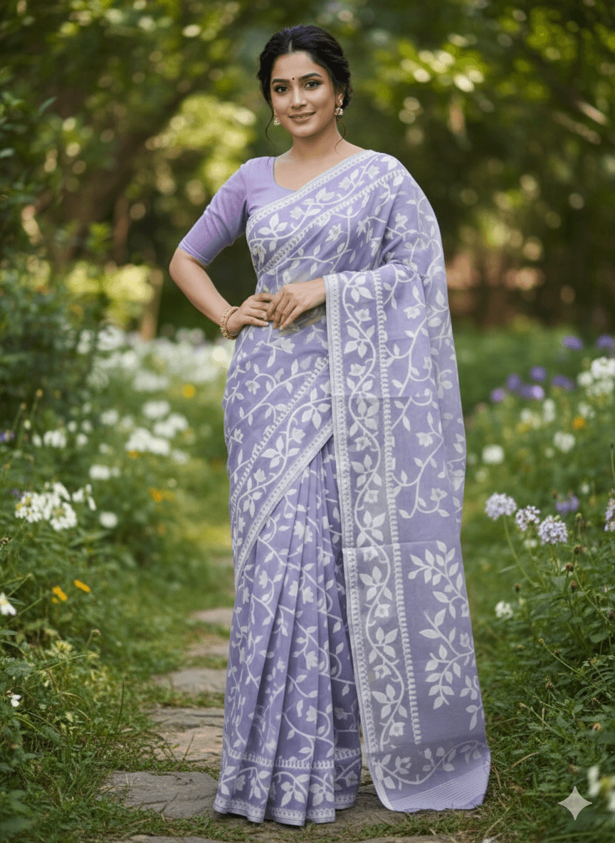 Step into a dream with Sheli’s Brand. Our Lavender Soft Handwoven Jamdani is where traditional craftsmanship meets the colors of a spring twilight.