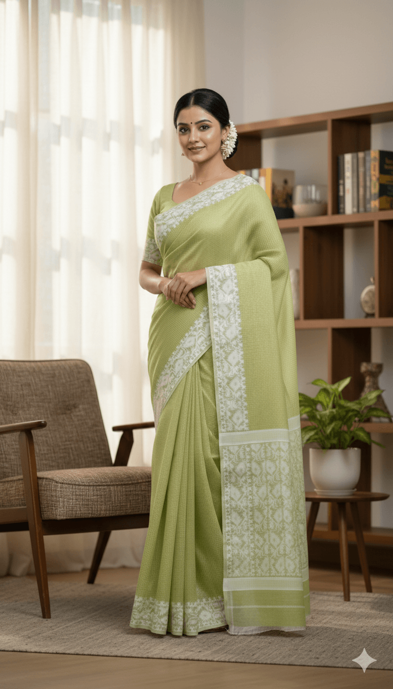 Lemon Green Soft Handwoven Jamdani