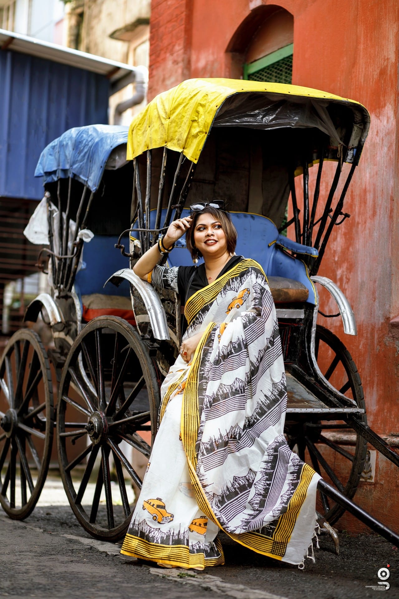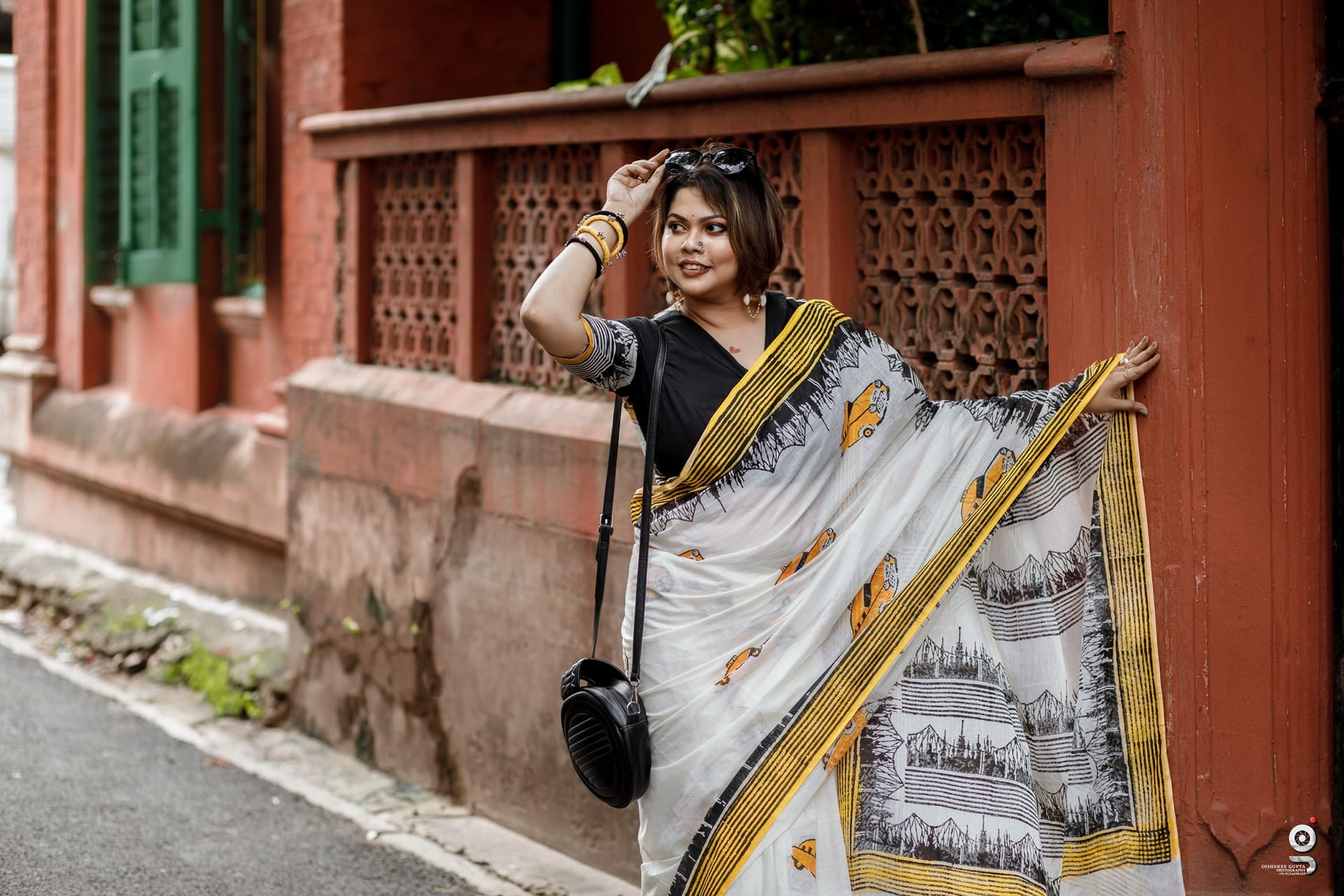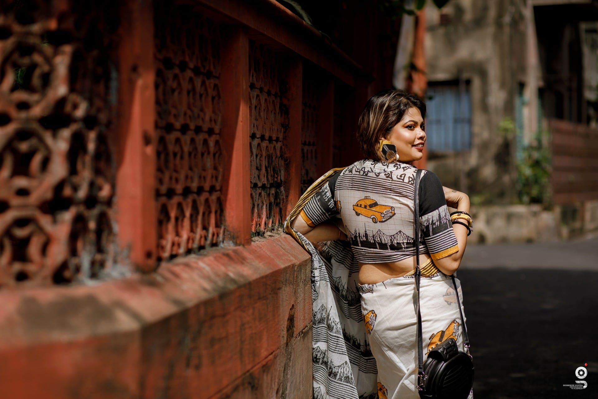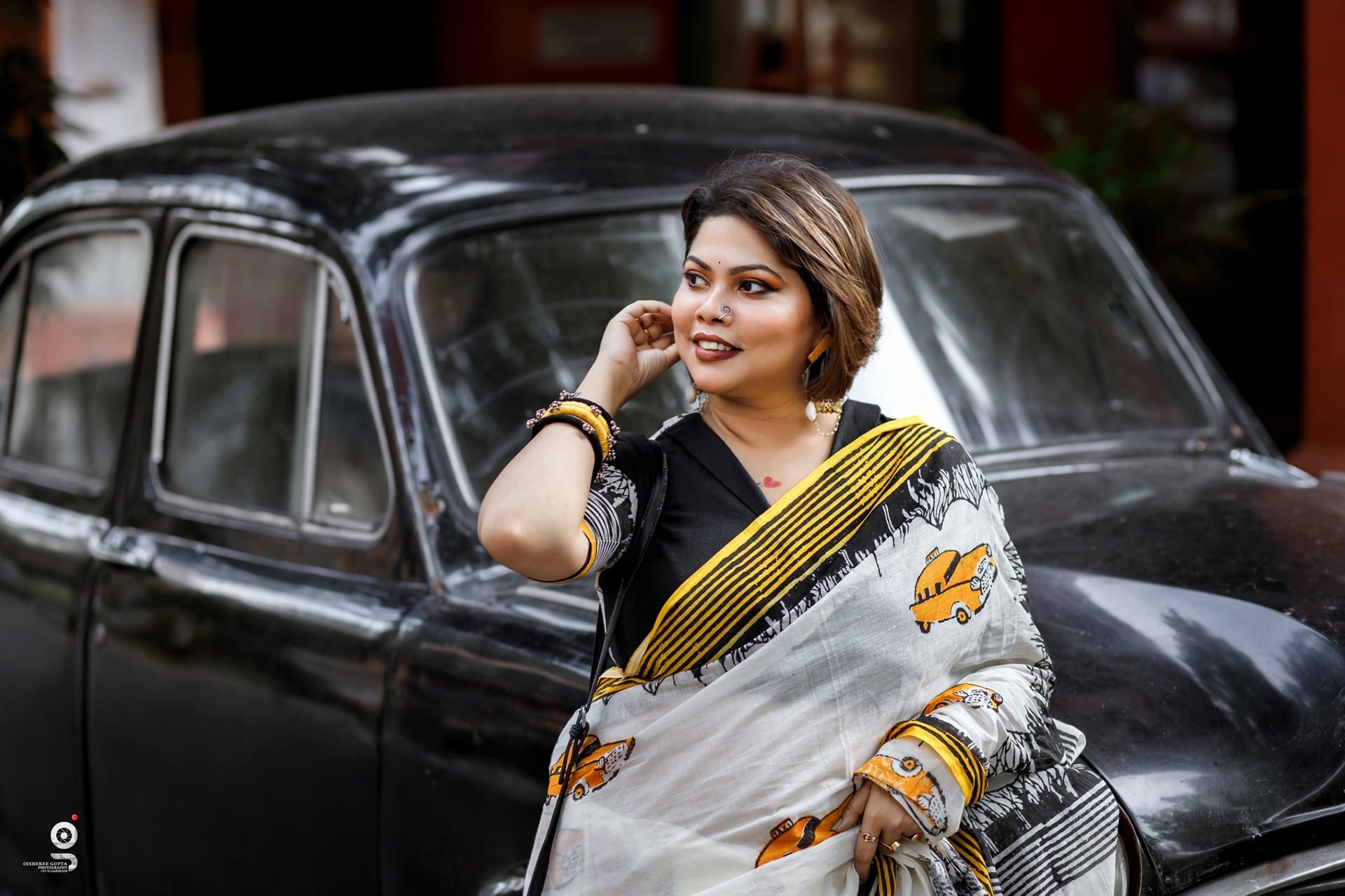 Taxi print cotton saree