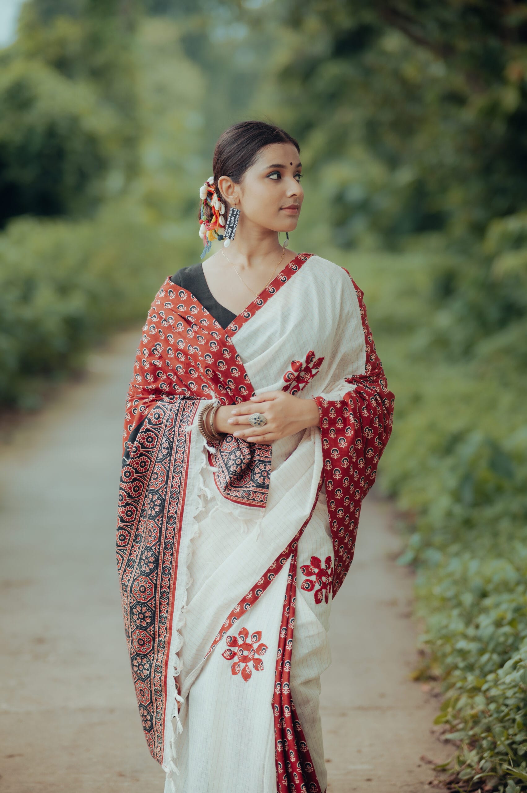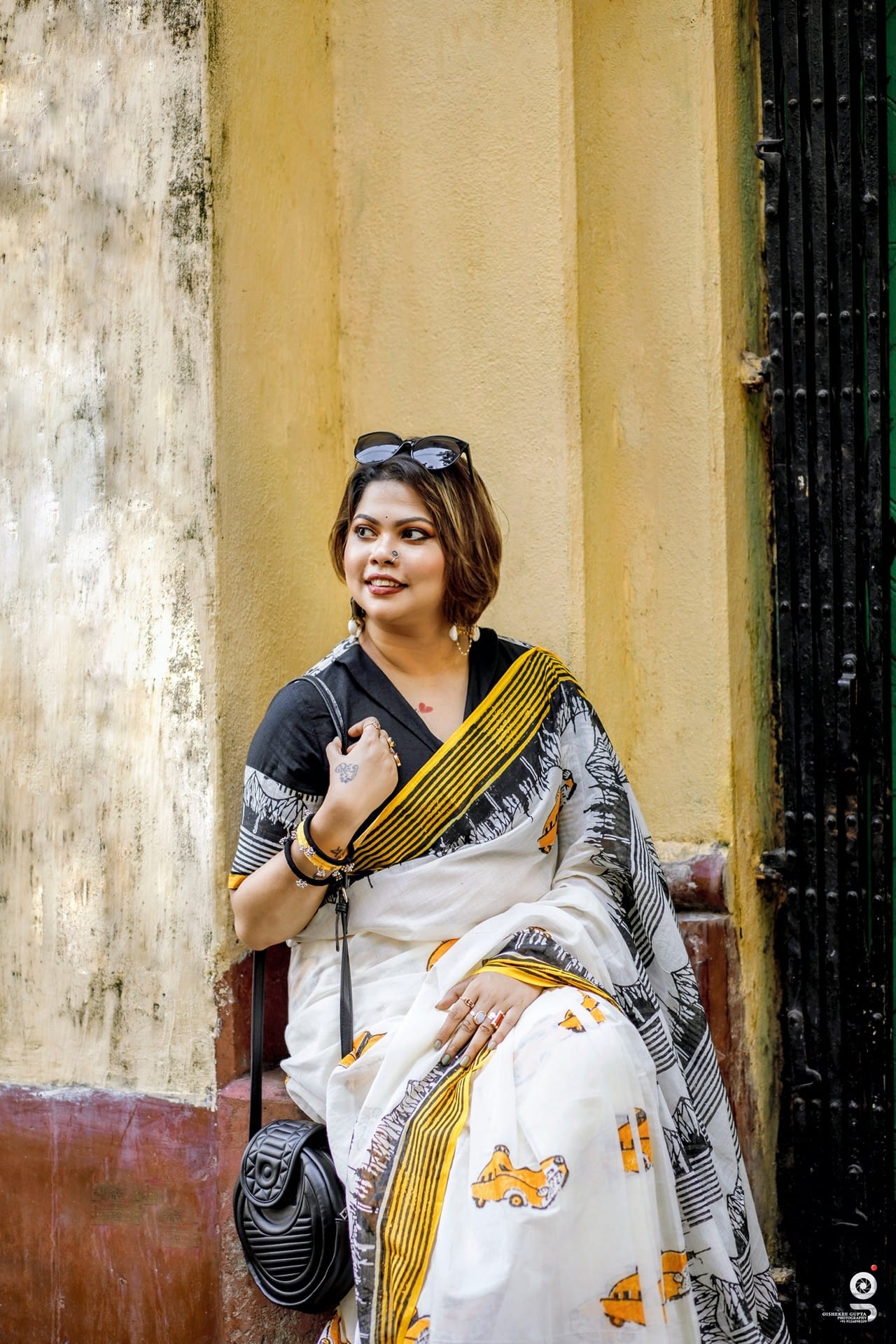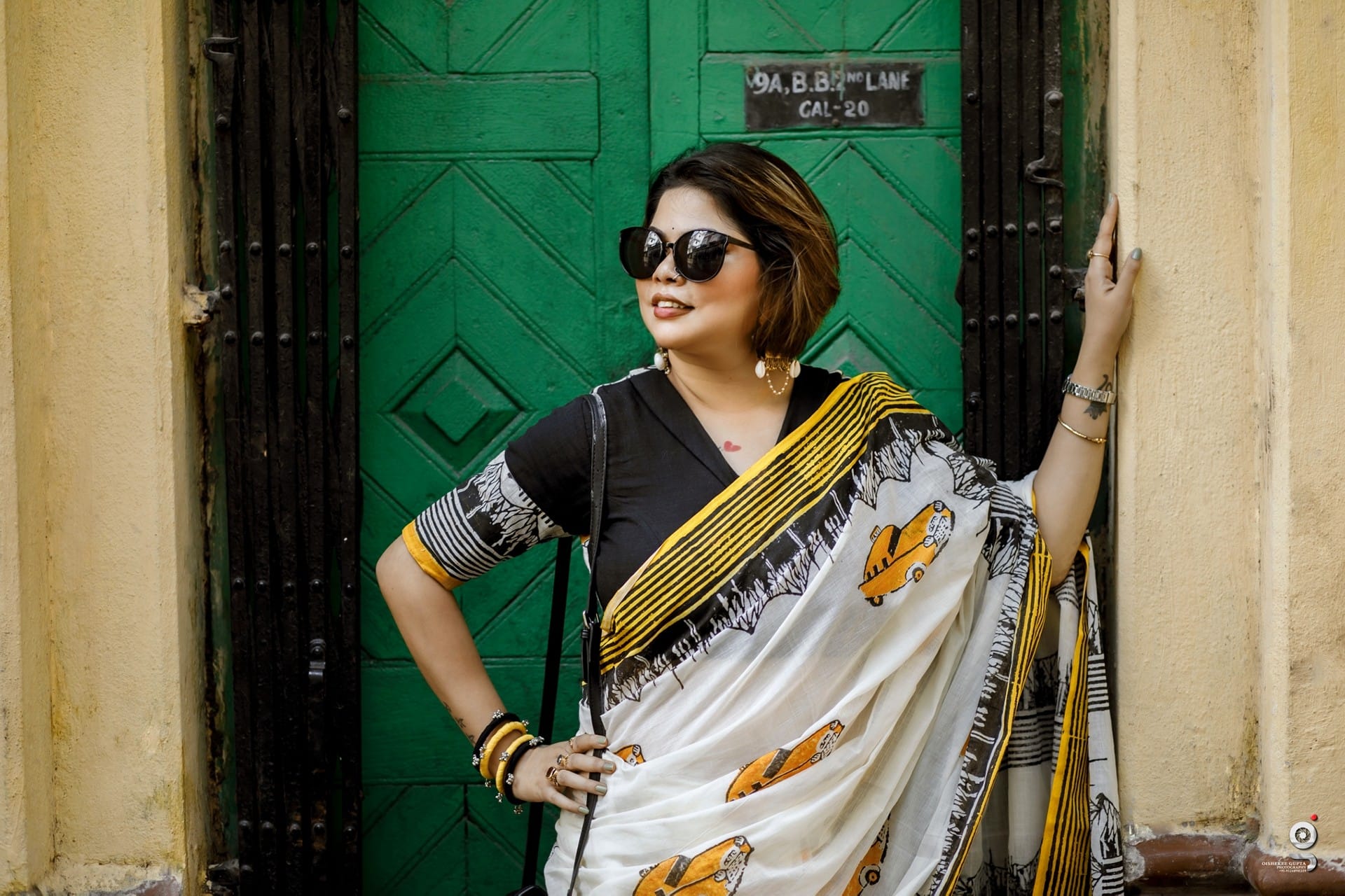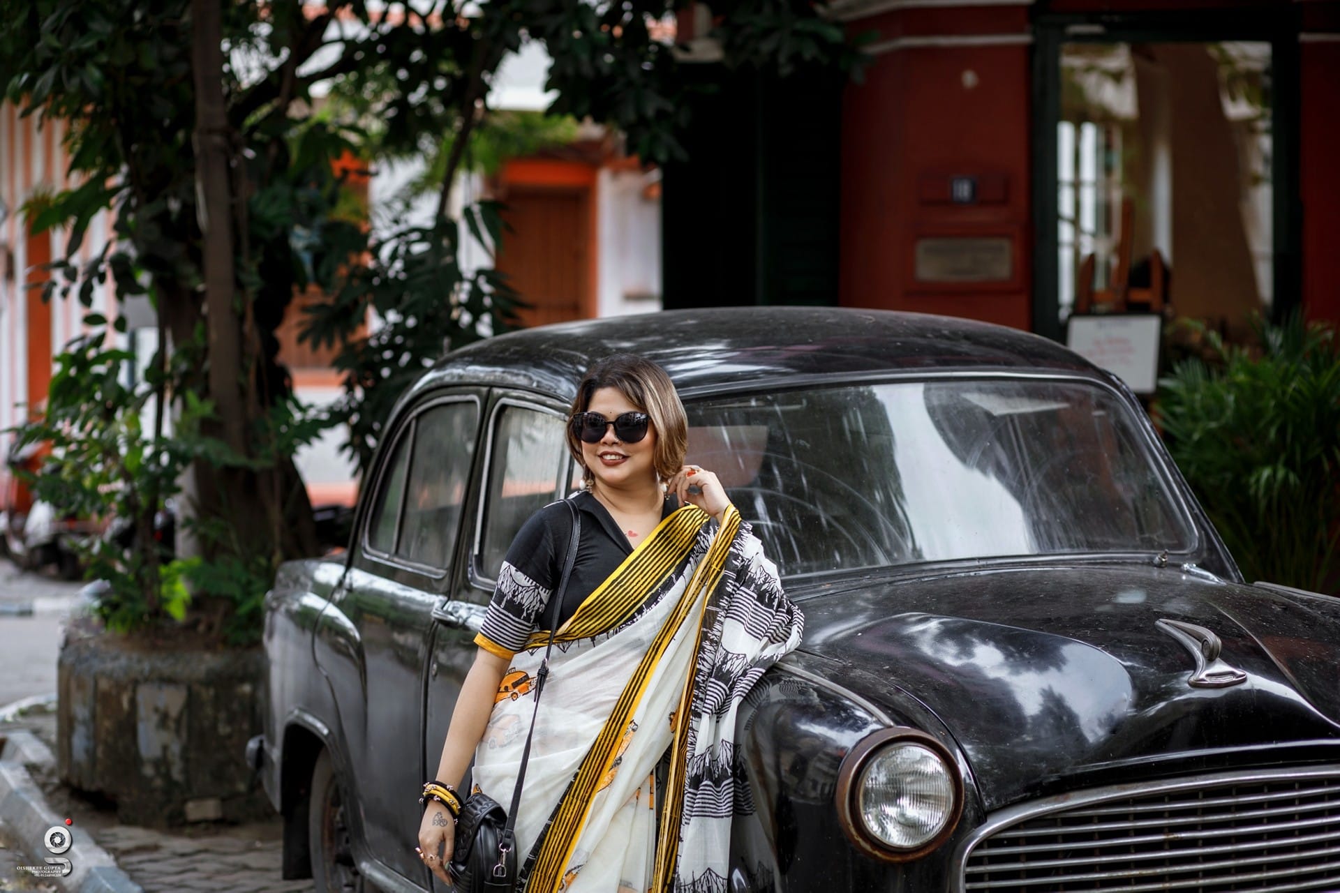 Taxi print cotton saree