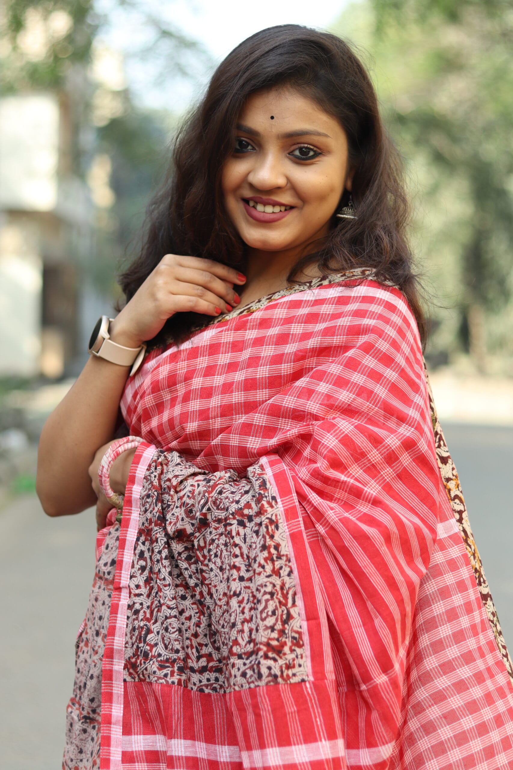 The Kalamkari-Gamcha Fusion Saree